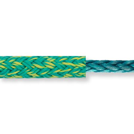 MFP mottle cover combination of base color & yellow (and braided Dyneema® core. Extremely strong, lightweight, and easily tapered. Ideal for light air spinnaker sheets and dinghy/one design control lines.